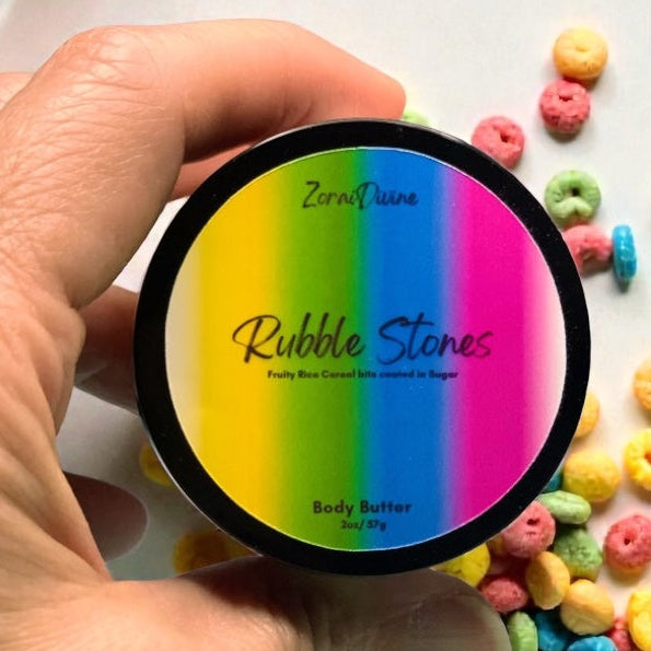 RUBBLE STONES - Smells like fruity pebbles, a fruity rice cereal bits coated in sugar.